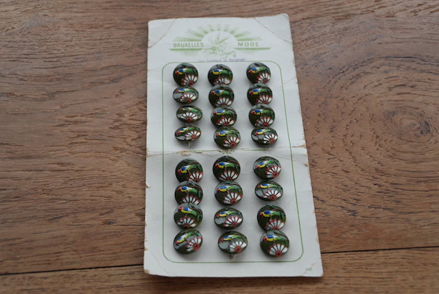 Kaart met 24 Antieke Glazen knopen 18mm Hand beschilderd Olijfgroen