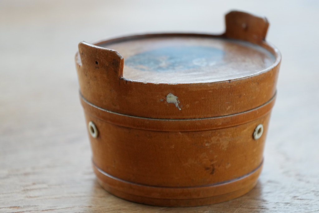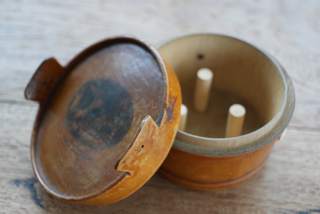 Antieke gatenhouder voor 3 kleine bolletjes garen, 3 gaatjes