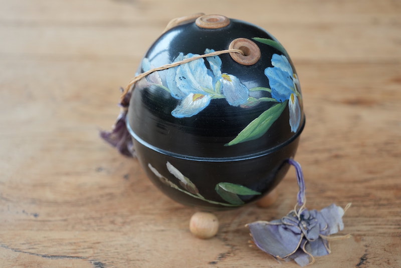 Een houder waar je meerdere kleine bolletjes garen in kunt bewaren en via de 3 gaatjes 3 verschillende draden kunt gebruiken zonder dat het garen in de war raakt of de bolletjes door de kamer rollen.