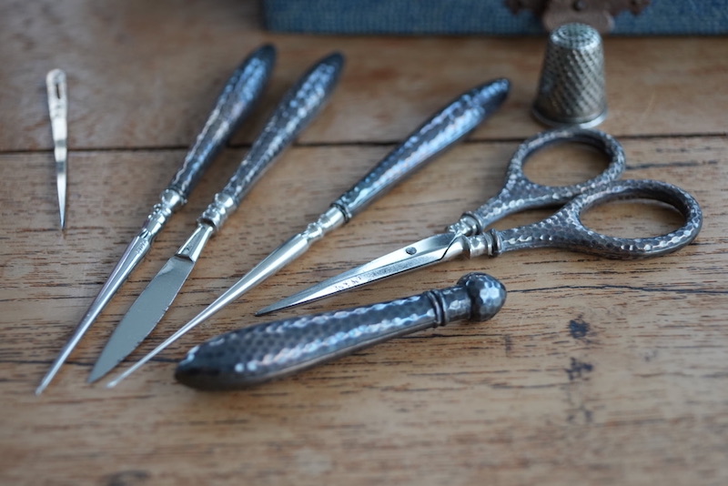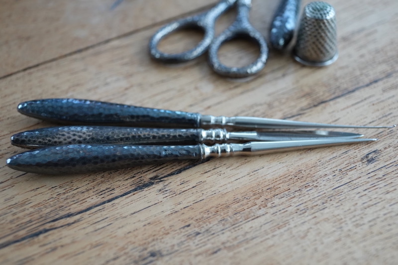 7 delig Zilveren naaisetje, hamerslag Duits maar de naaldenkoker is Frans