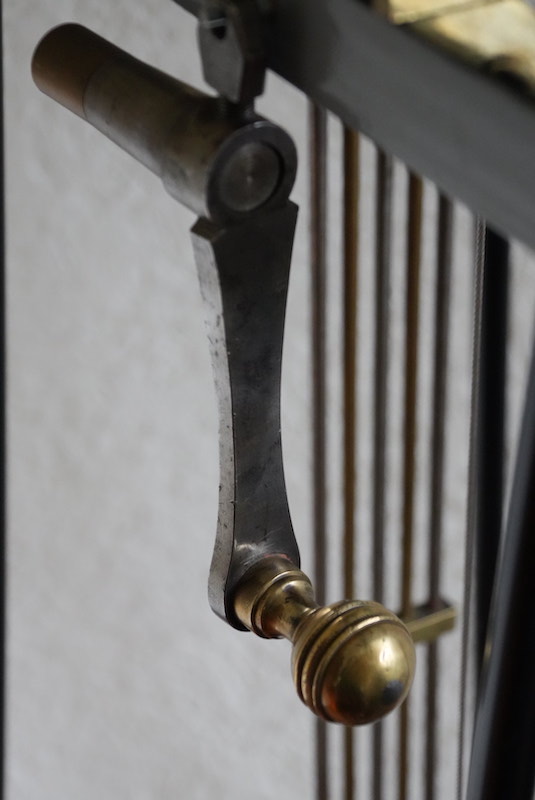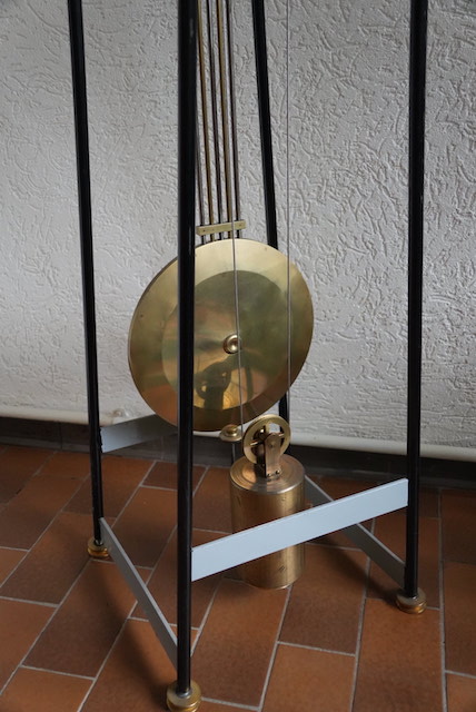 Slinger is niet origineel, dit is een compensatie slinger wat wel mooi bij dit messing uurwerkje past.